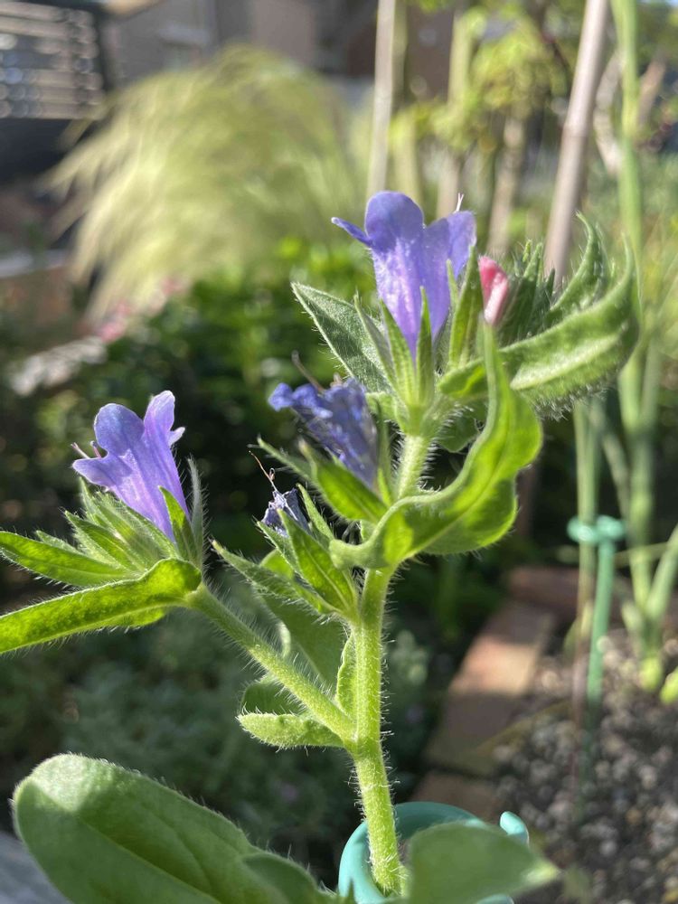 今年植栽したブルーベッダーが開花しはじめた。可憐だ。