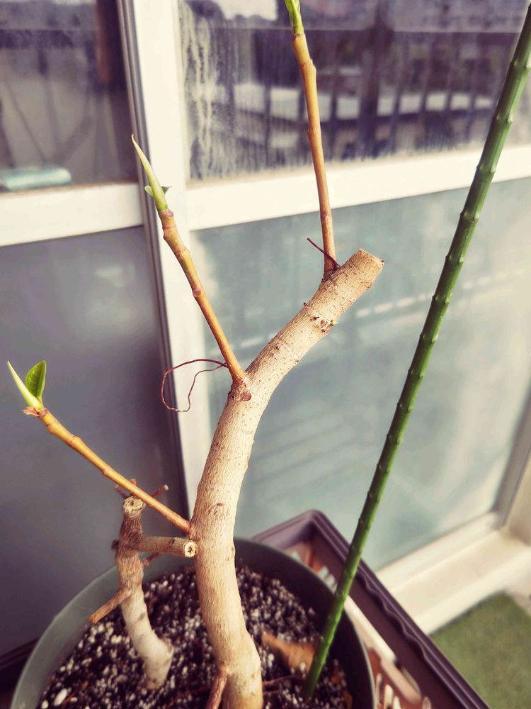アルテシマ、後ろでベンジャミンが邪魔して見にくいかもしれませんが先月より新芽が大幅に増えています。こんなに増えるとは思いませんでした。2枚目が先月の様子です。