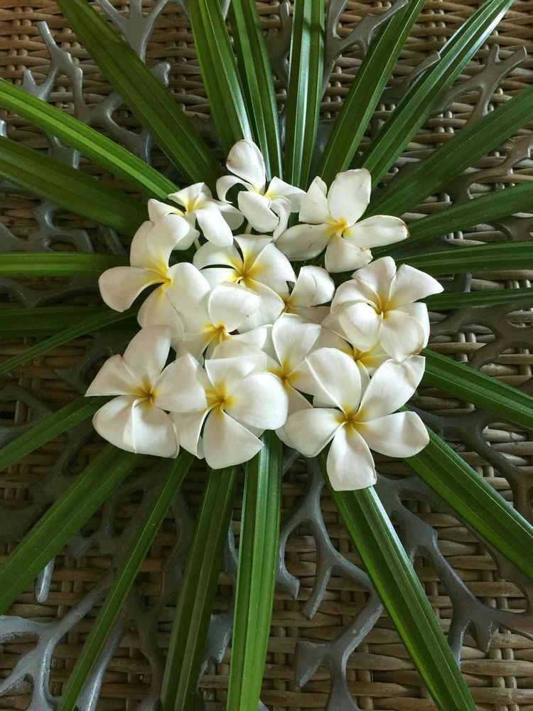 滞在先ホテルのロビーのテーブルも可愛く飾られていました❣️広大な敷地内に数え切れないプルメリアの樹があり甘い香りがお部屋にも漂って幸せな時間でした💕