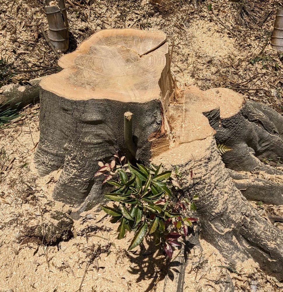 斜面に生えてきた木で、このまま育つとスダジイは樹齢も長く巨木になってしまうので、将来困るということでやむを得ず切りました