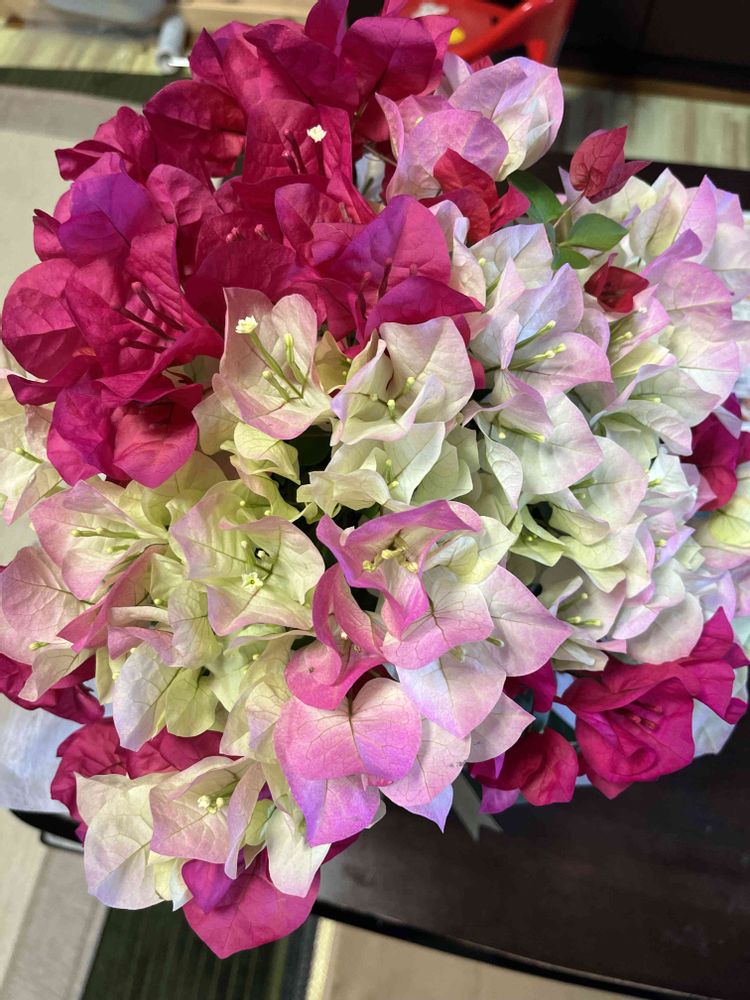 ブーゲンビリアは南の国の花🌸で、暑いのが好きみたいです。去年の猛暑をベランダに出して置いたら、それまででいちばんたくさん咲きました。