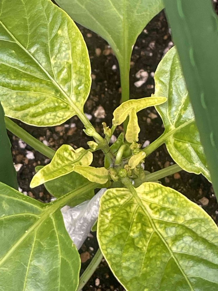 パプリカ🫑は、先日追肥をした場所がいけなかったのか新しい葉が黄色くなってしまいました。4・5枚目