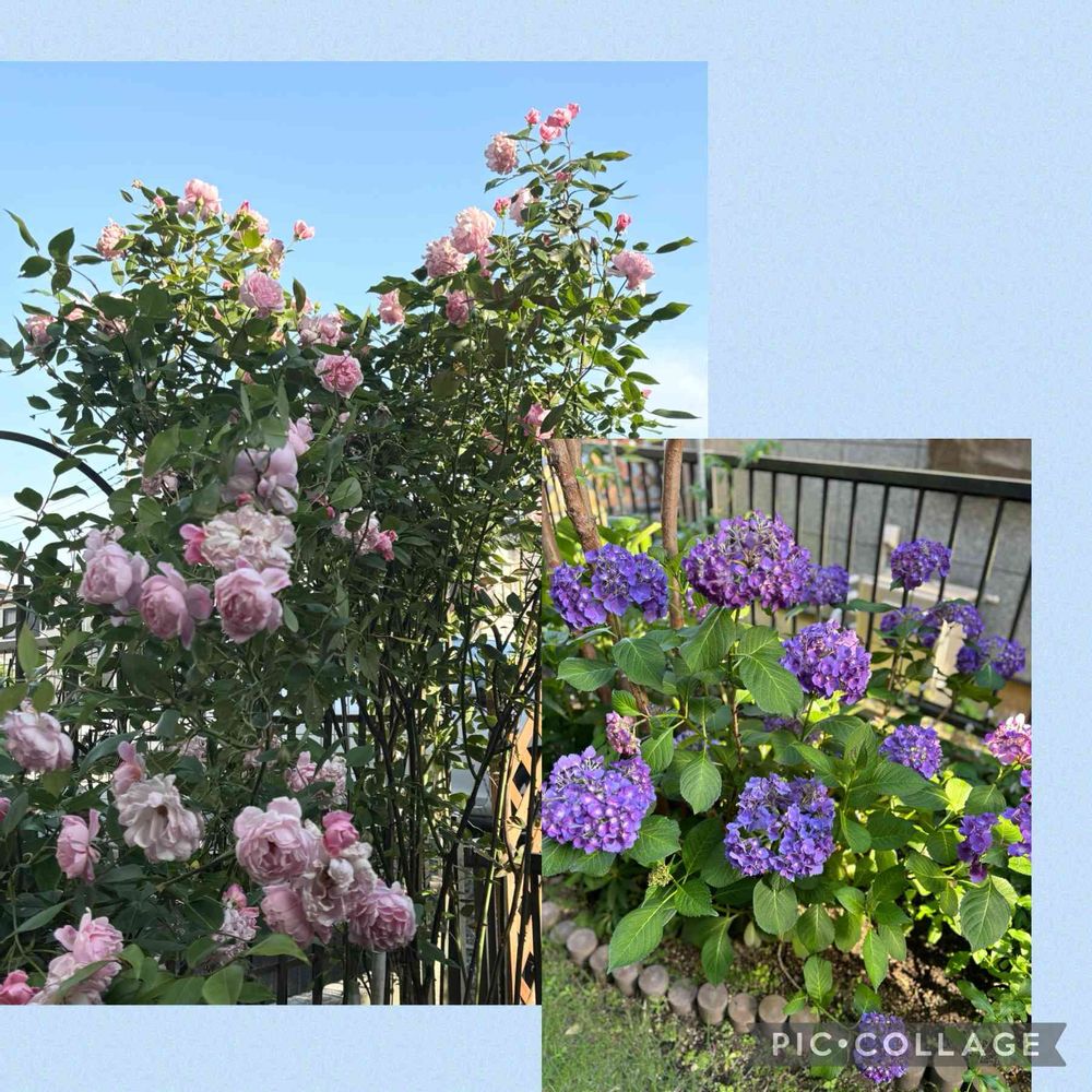 娘さんのお庭は、バラとアジサイにとって良い環境なんですね🌹💜