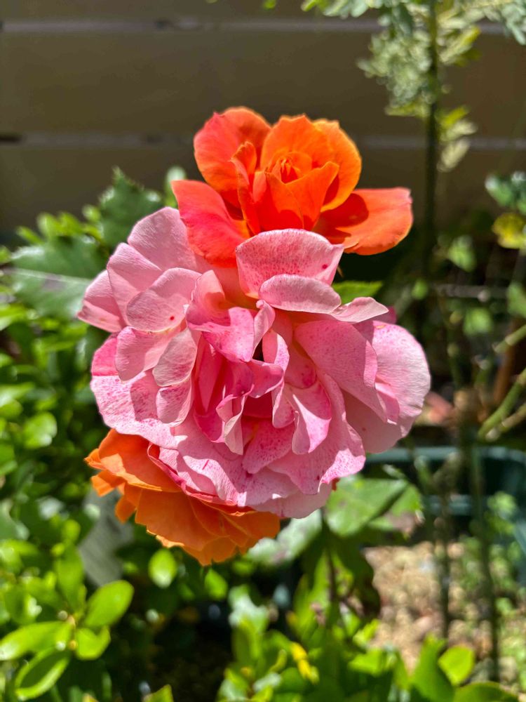 オレンジからピンクになってくるバラ🌹に癒され🥰
