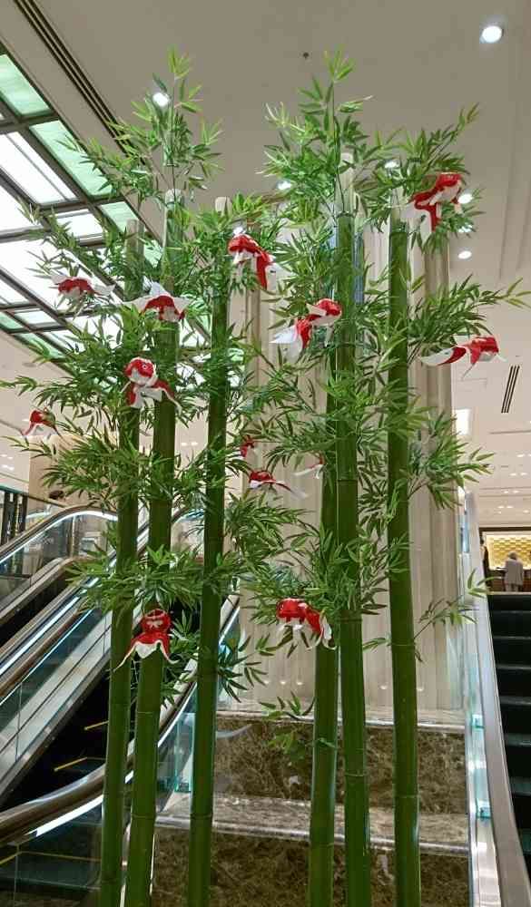 竹のあいだを泳ぐのは、柳井金魚ちょうちん。