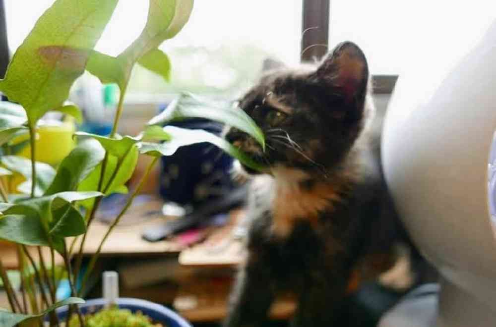 やんちゃな子猫なので、葉をかじったりして目が離せません😞