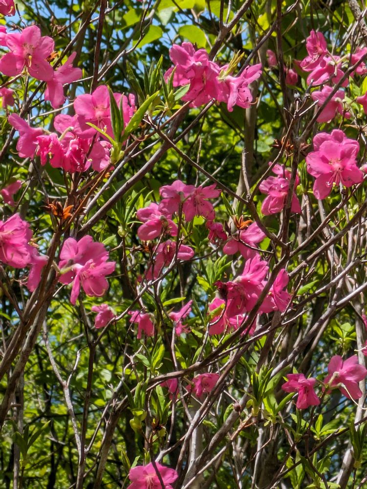 鮮やかな新緑が目に優しく その中に綺麗な色のヤシオらしき花が