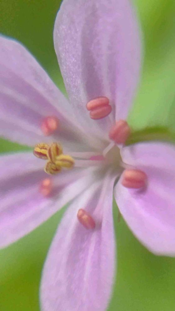 ⭕️開花直後は花弁側にあった雄しべ10個のうち4個は中央に集まって、赤いヤクが破けて黄色い花粉が出始めている🟡(2枚目)