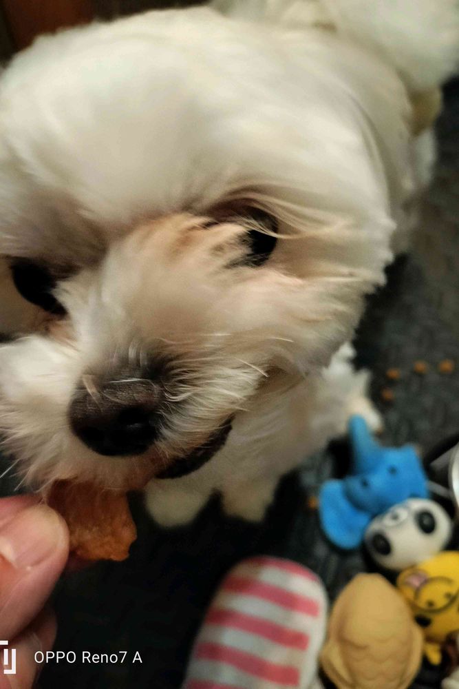めいちゃんがくれたジャーキーをすごい顔で私の手から取っていくんだけど…これこれ!なんてブチャイくな顔🤣🤣🤣