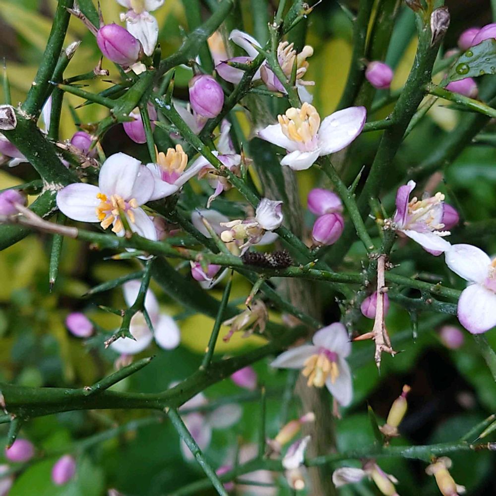 うわ〜っ❗️フィンガーライムの🍋🟩お花がいっぱい咲いてるね