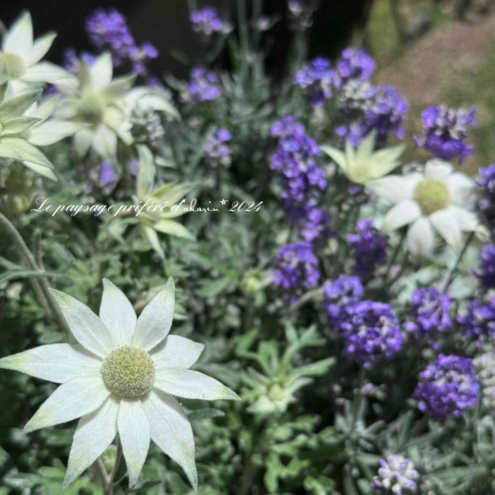 イングリッシュラベンダー꙳⸜カノンスター⸝꙳は蕾のうちは白くてフランネルフラワーのそばで凄く可愛い〜꙳☄︎