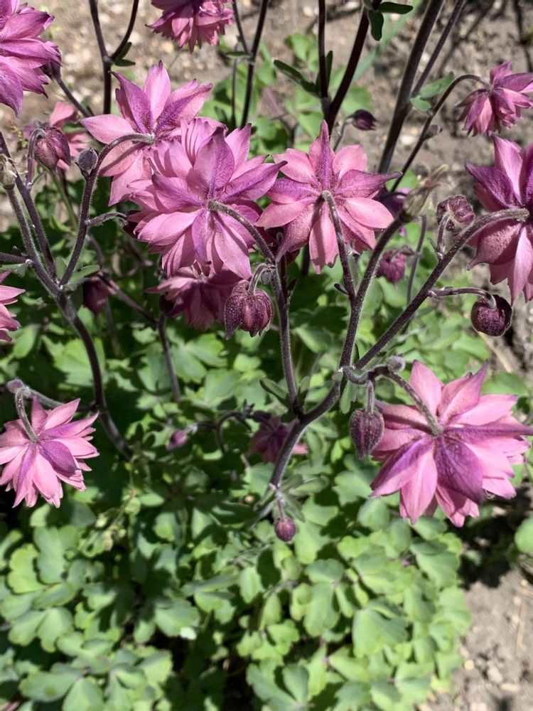 八重のオダマキ、写真を撮ろうとしてもみんな、下向き⤵️⤵️