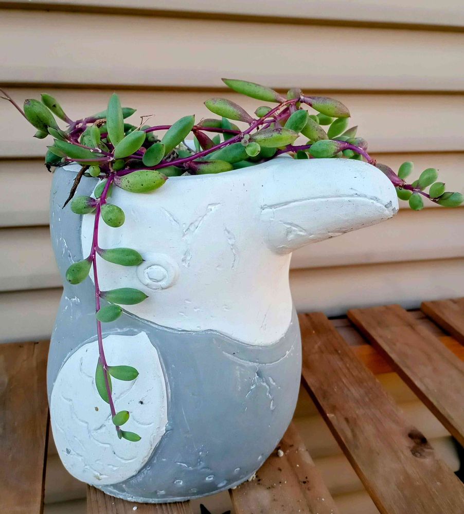 さん🐸✨けいこさんから頂いたルビーちゃんをアチコチちぎって増やして🥰✌️楽しい💃💓色んな植木鉢あるけど、ハシビロコウちゃんの植木鉢はルビーちゃんたちが喜んでるようで🤭