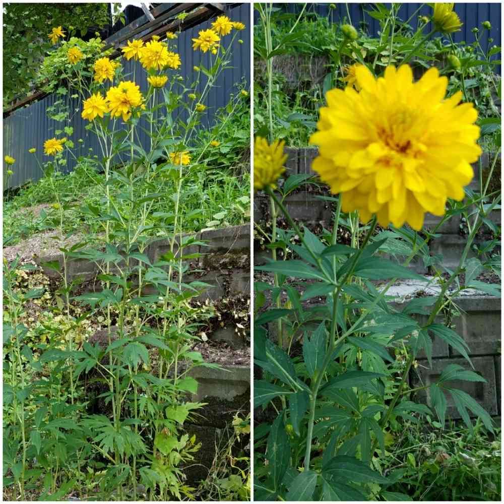 キク科のオオハンゴンソウ属多年草の花笠菊だそうです。八重咲きだそうです。一重咲きはキク芋の花と似ているのですが、葉の形が違うとの事でした。ちゃむさん、しゅんたくさん、ありがとうございました😊