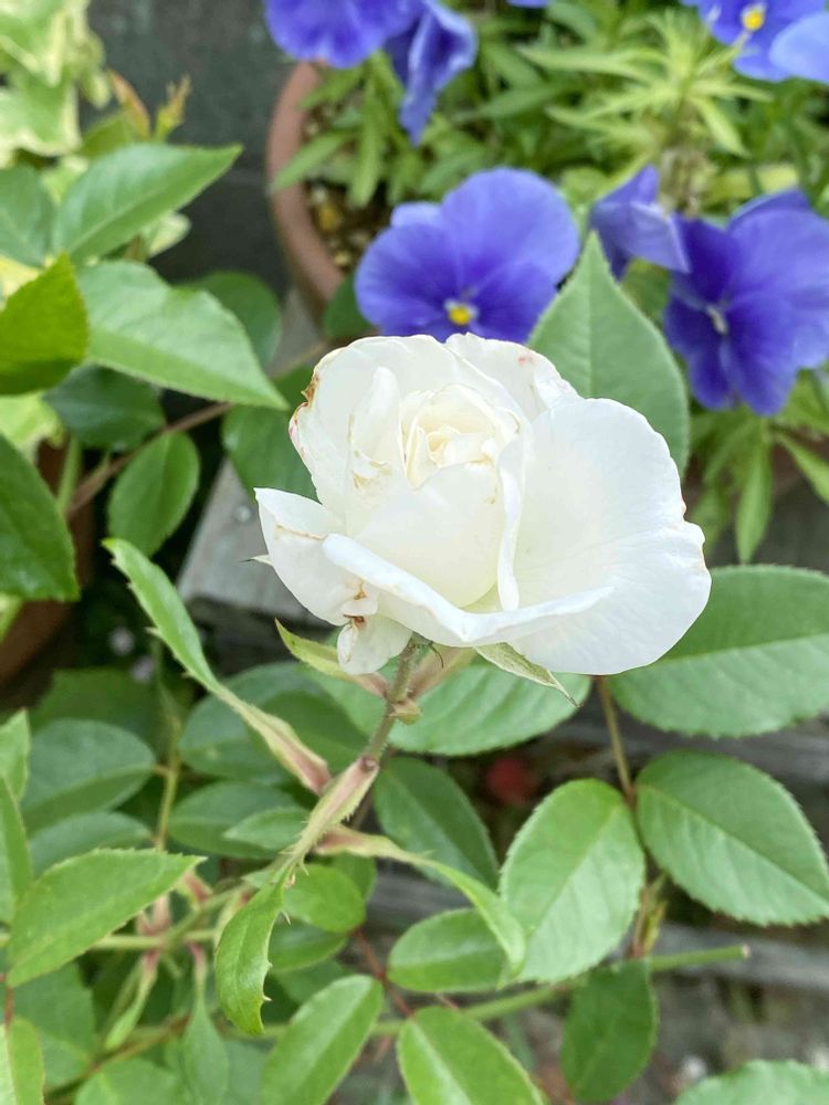 初めて自分で、ノイバラの台木に接木したアイスバーグ。一輪だけ咲かせました。