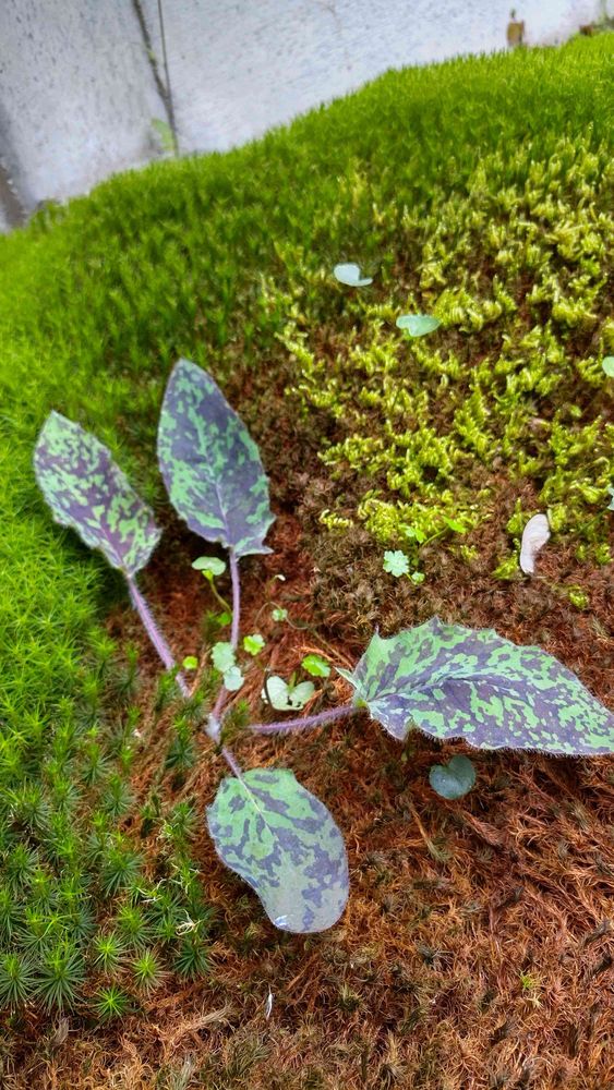 自宅の敷地の雪捨て場に生えてきました。雪解けになると一面が苔だらけになるくらい湿りがちな場所です。左は苔、右は枯れてきてますが、真ん中に見慣れぬ葉っぱが。抜けば良いのか迷っています。名前の判る方、教えてくださいm(_ _)m