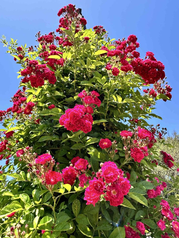 日本のノイバラの交雑種がヨーロッパに伝わった?珍しい赤のランブラーとか