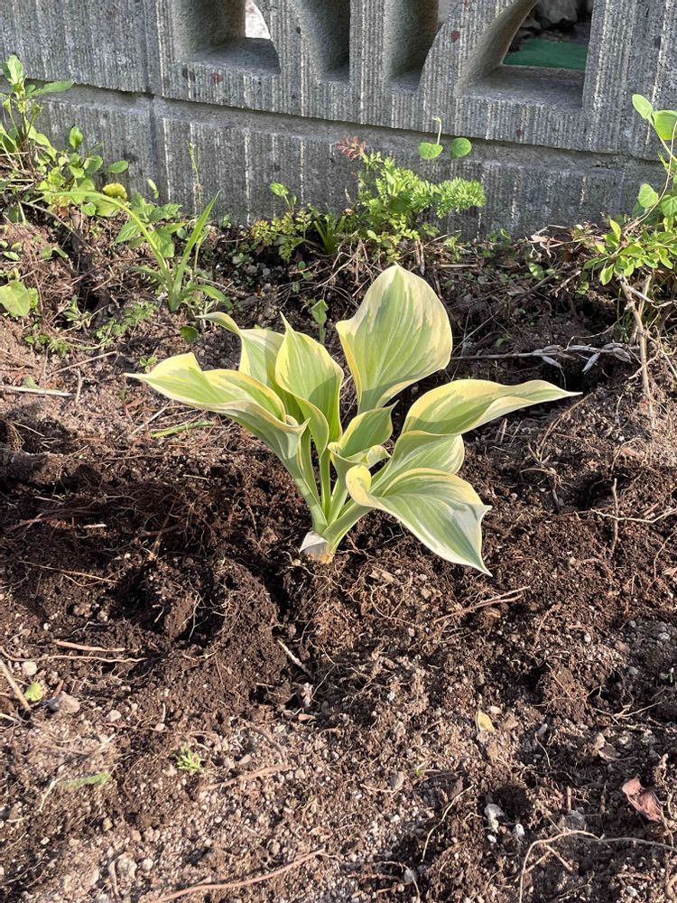 雑草を抜き去った場所にホスタを2種類植えてみました