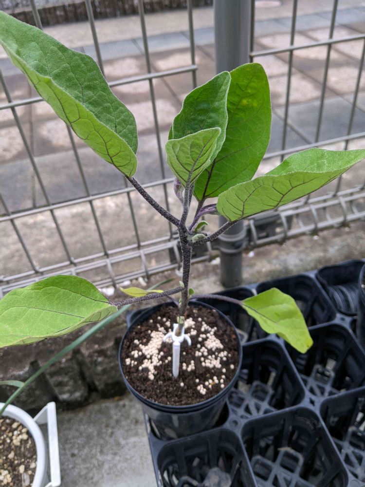 ナスは一番花が咲くまで鉢増しして育てます。