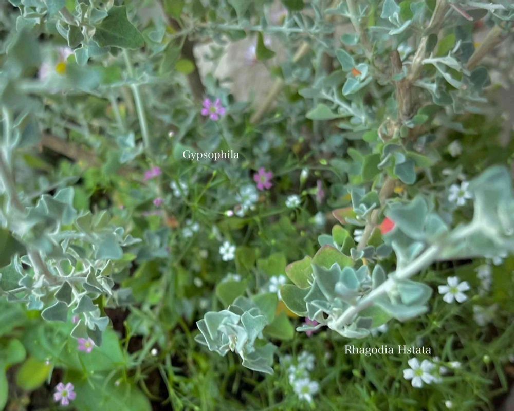 ラゴディア・ハスタータの木の下で冬越ししたカスミソウのお花のピンクも咲いてきました♡