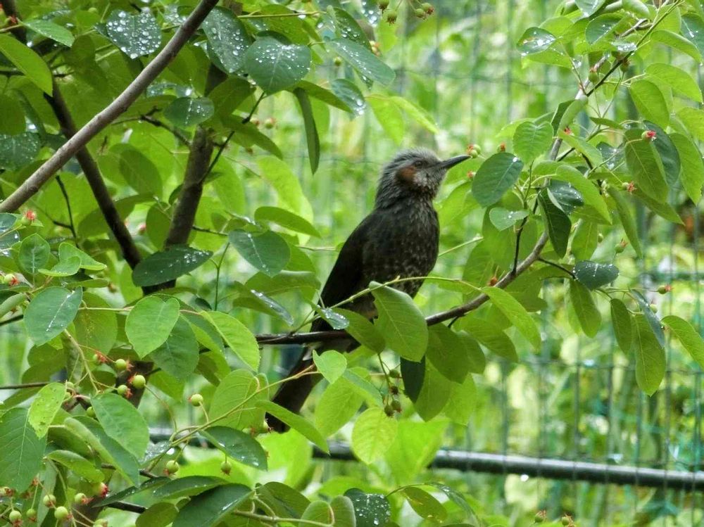 ④ ジューンベリーの実を食べに来たひよどり🐦
