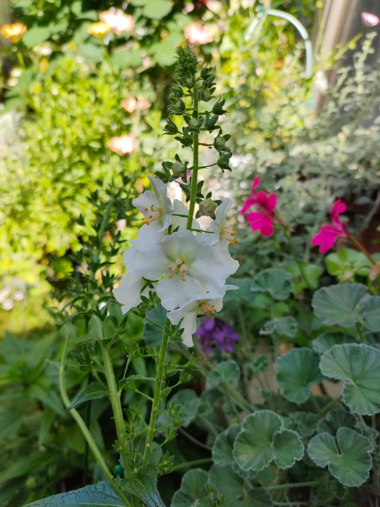 ² 種まきのバーバスカム、紫はたくさん咲いたけど白はこれ一本だけ💦
