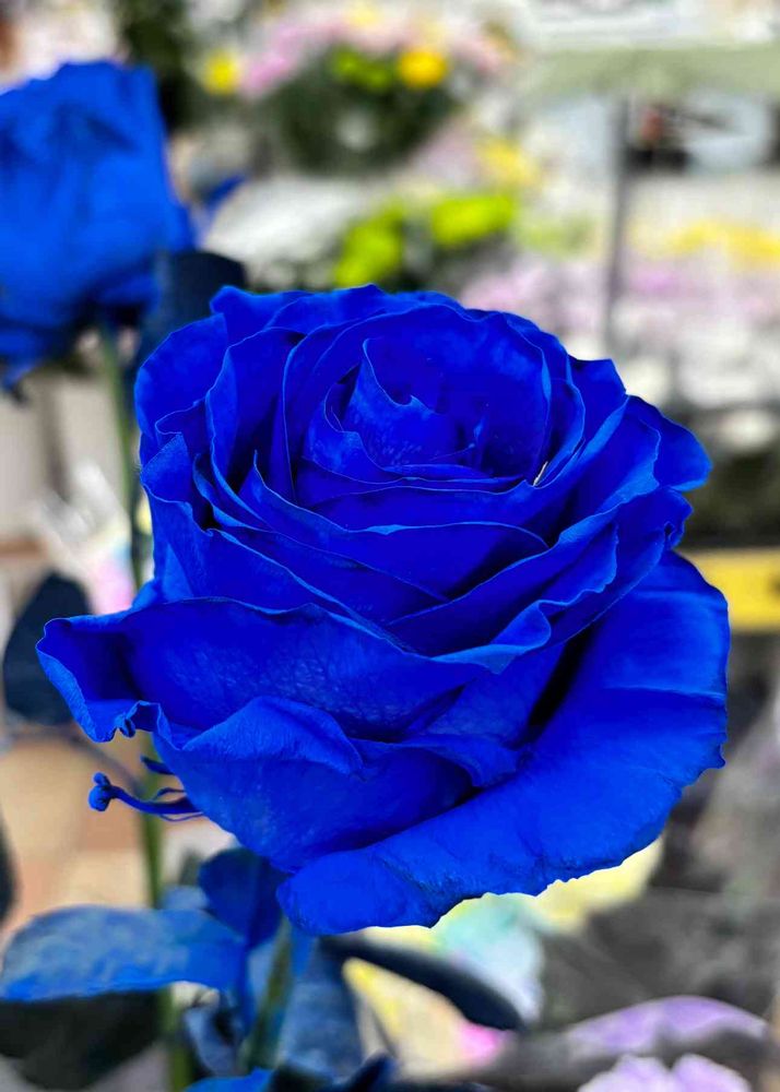 真っ青👀 青いバラはないらしいですね 青の🟦お水ですかね 葉っぱも青い🍃本物でした