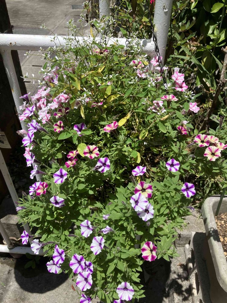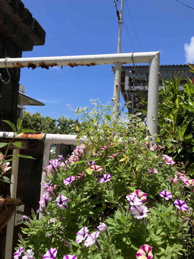 4枚目はPWさんのペチュニア寄せ植え、最後の写真は沖縄の空とペチュニアさんです。沖縄はもうすぐ梅雨☂️空はすっかり夏です!