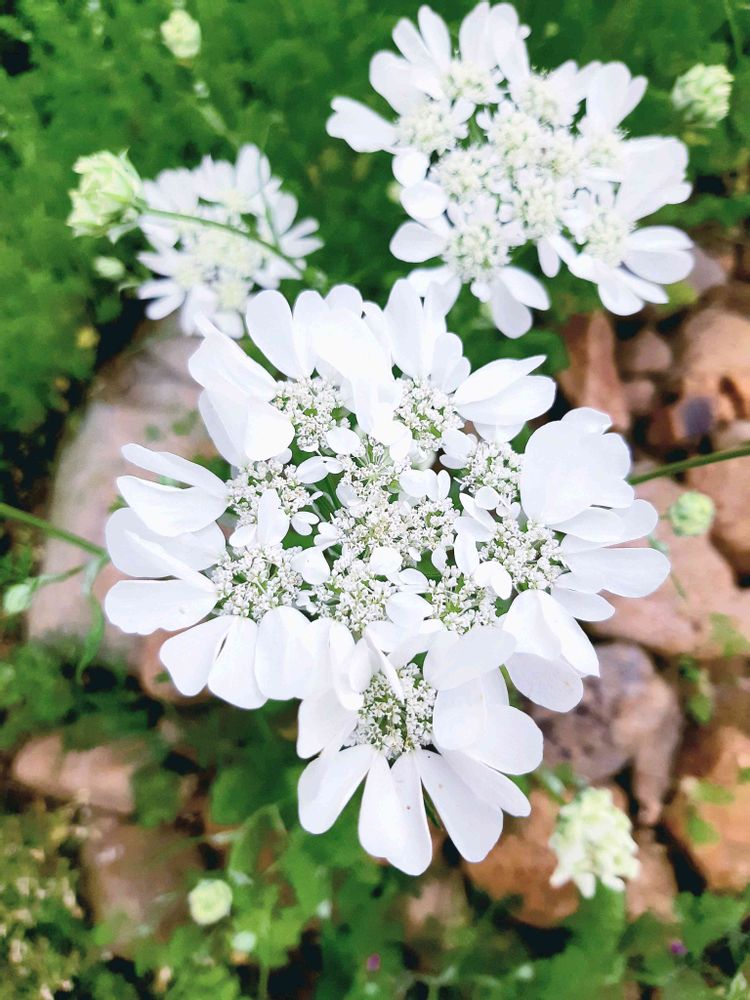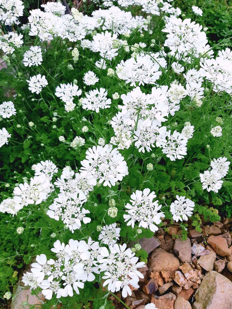 数日ぶりに戻ったら、庭のあちこちでオルラヤホワイトレースが溢れ咲き中💠💠💠