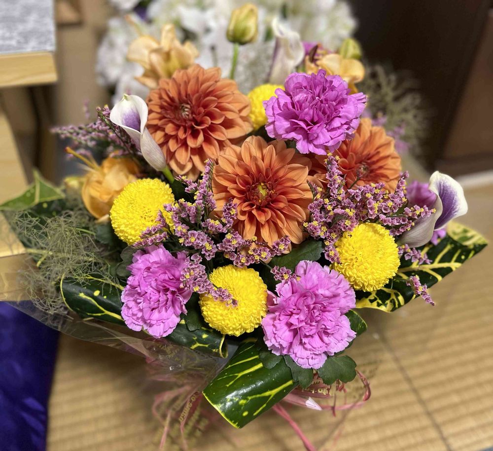 あまりにも突然で気持ちの整理が付かず、、、もっと早くお見舞いに行ってアレンジを届けたかった🥲仏前には似合わないかも知れないけど明るくいつも笑い声が絶えない方だったので、、、、そのイメージのままアレンジして届けた。喜んでくれるかな、、、ありがとうございました。天国でもお花いっぱい咲かせて下さいね☺️