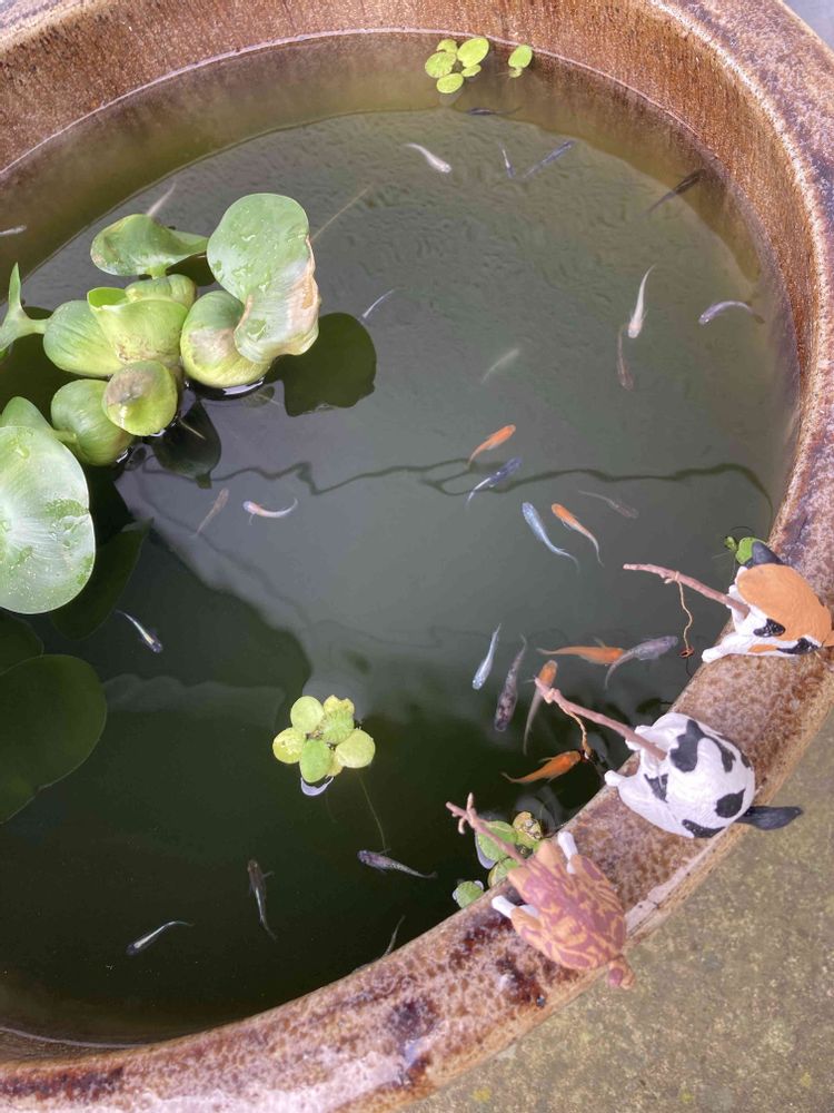 以前GSで、メダカとガチャの猫ちゃん見掛けて、あまりの可愛さ💕にメルカリで猫ちゃん探して、こうなりました♪