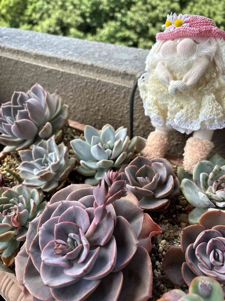 エケベリアも可愛い💓今年もベランダ東側はアエオに譲り、エケは西側で夏越しです。お願い🥺耐えてね