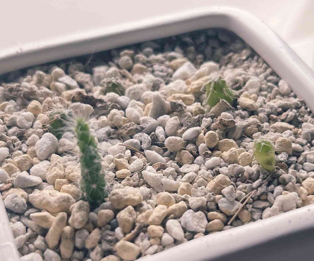 ガチャに付属していた1号鉢にそれぞれ蒔いてましたが、成長してきたのでまとめて一つの鉢に寄せ植えしました🌵