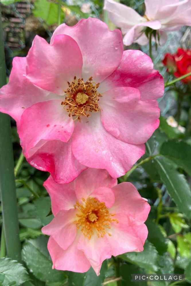 一枚目の一重咲きの薔薇🌹の種類はホット花巻と言うんですね。可愛いピンク色ですね💕