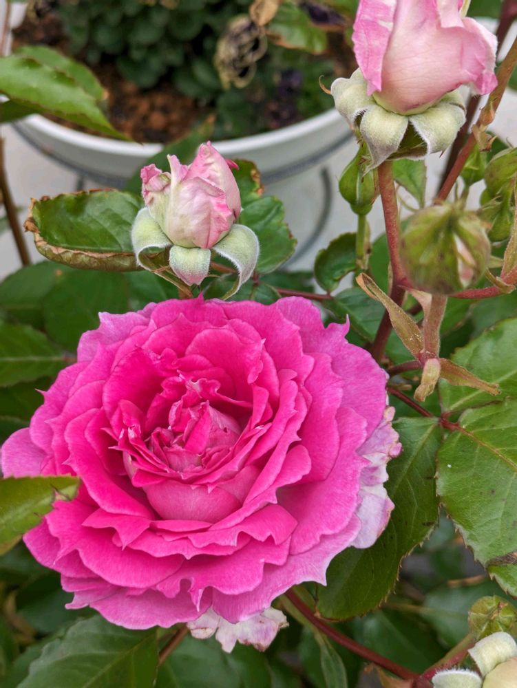 天気が↑↓繰り返して黒星だかベトだかの斑点あるし、うどんこ?なのもいて、蕾には赤い斑点…灰色カビ病だし😓消毒念入りにしてるから進まなきゃいいけど🥹またまた今日は寒いよー💦人間も体調崩す💦