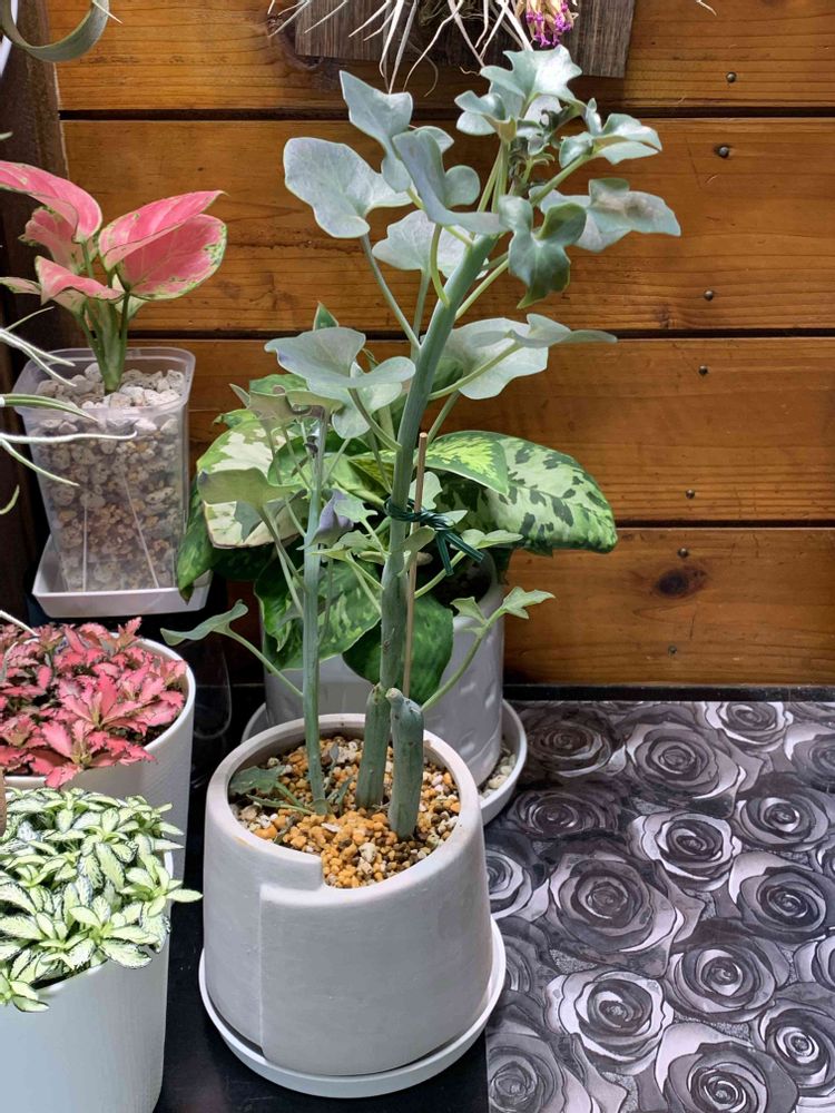 買った時のまま育てていましたが伸びすぎて勝手に倒れて折れたので植え替え&折れたのを挿し木しました。