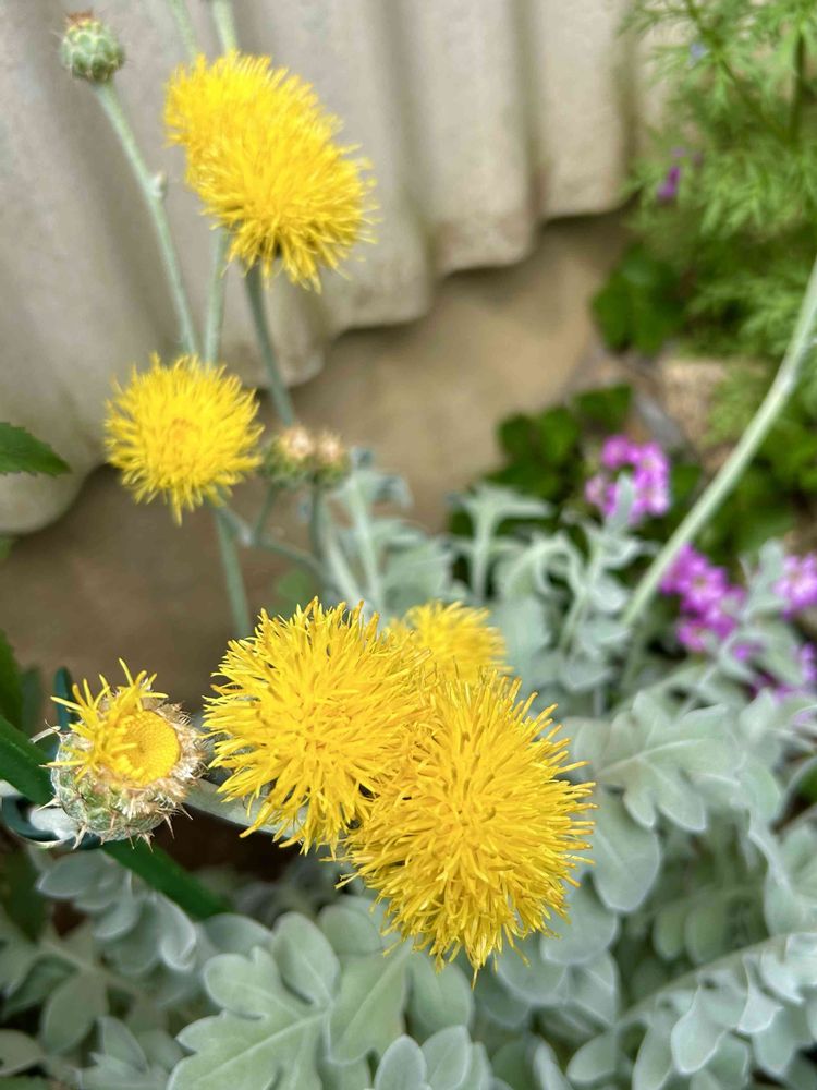 シルバーリーフがかっこいいセントーレアなんですが、お花が意外と可愛くって🟡ꈍᴗꈍ🟡