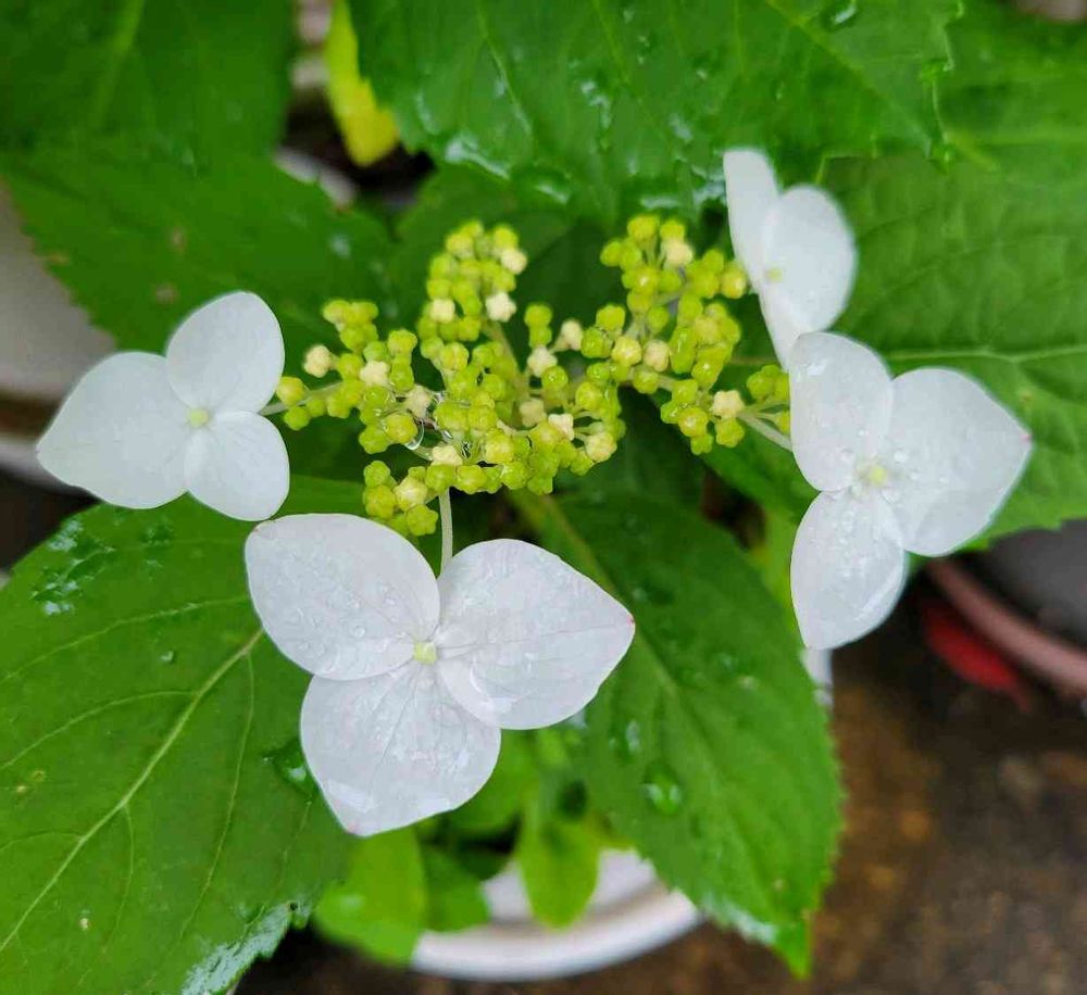 私も一昨年に挿し木用の枝を2, 3本いただいて、今ではアジサイとヤマアジサイともに4~5鉢に増えてます😍