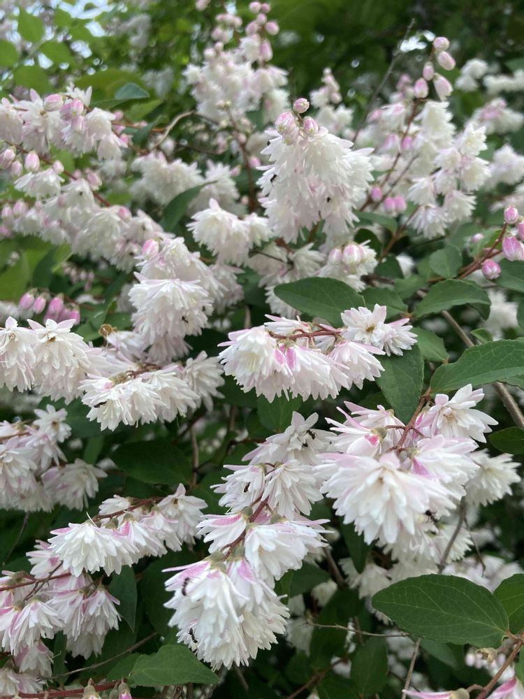 蕾はピンク色で咲くと真っ白に見える可愛らしいウツギです🤍💕🌿