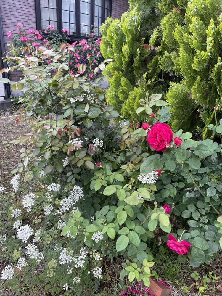 カシワバアジサイとピエールドゥロンサールが咲くとまた華やかになります❣️