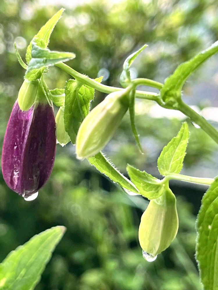 蕾が一つ紫色の花みたいです💜