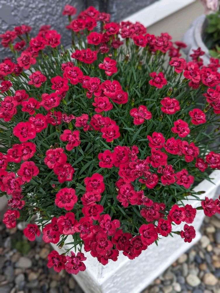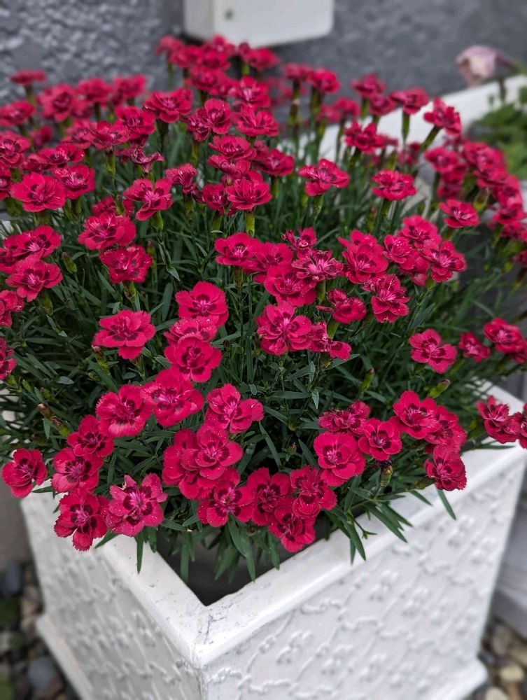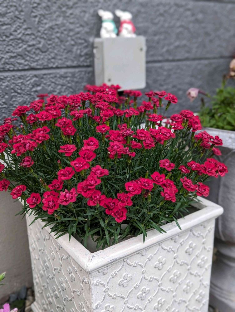 真っ赤なダイアンサスにグレーホワイトの鉢でお似合いでした😍