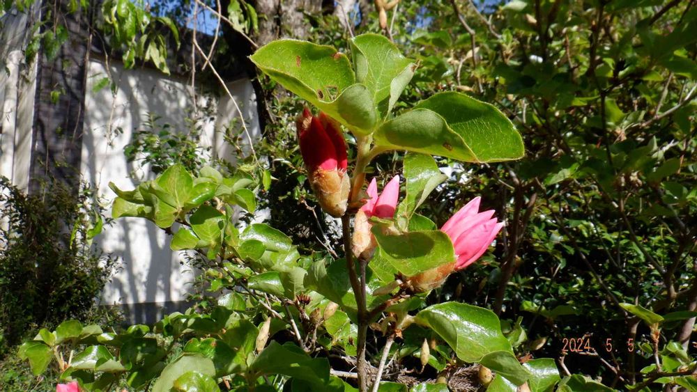 オンツツジは花の後に葉がでるみたいに感じましたが、この木は花と葉が一緒に出ているように思います。