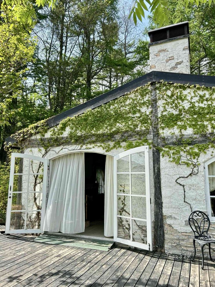 ⑤薔薇の庭まで行く途中の新緑とマイナスイオンが気持ち良かった〜🚶♀️🎶