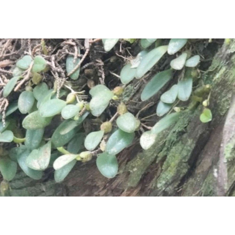 ムギラン,ムギラン,多肉質の葉の下に見える丸い偽球茎の投稿画像