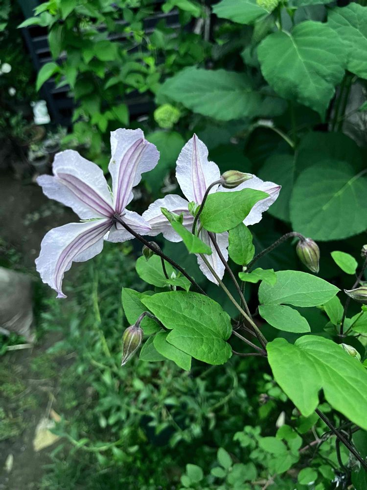 クレマチスホワイトプリンスチャールズが咲きました。渋いけど華やかな花。