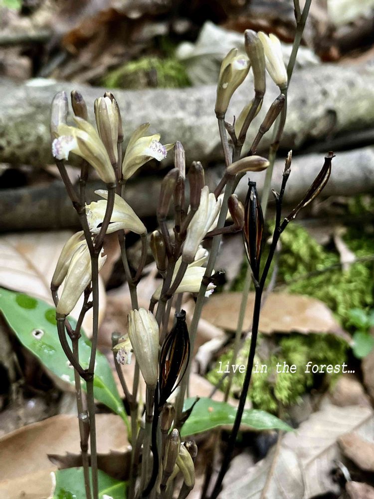 地元、隣り街に広がる森林公園の小暗い林の中で暮らす野生ランたちです…