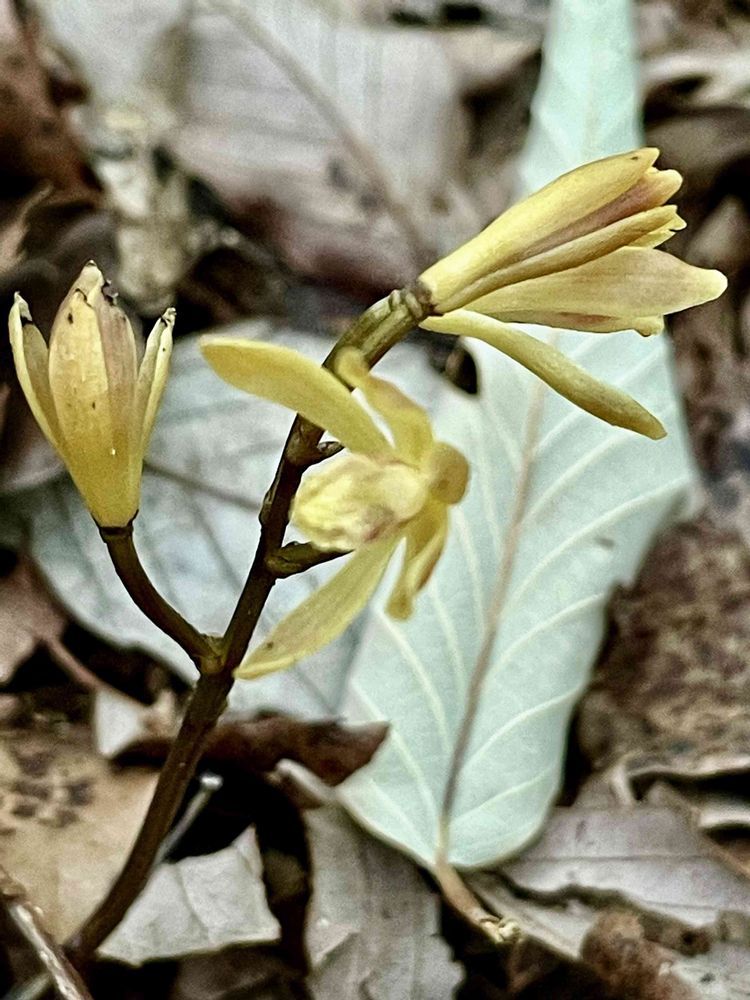 昨年から気になっている野生ラン、地元の森林公園内の林で何種類かが咲くのを知り