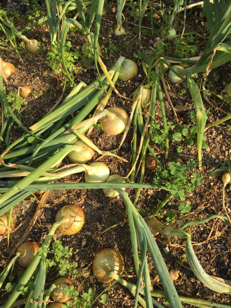 今年は家庭菜園の玉ねぎでべと病が多くて困ってる人が多い中、綺麗な玉ねぎ取れそうですね👍👍😊 もう収穫しても良いし、そのまま置いておくともうちょっと大きくなるけど扁平な形になっていきますよ