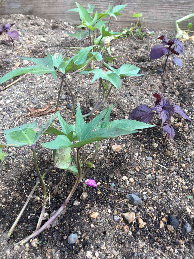 おとといの雨のおかげで葉っぱが元気になりました。種子島紫は葉っぱの形か面白い😊